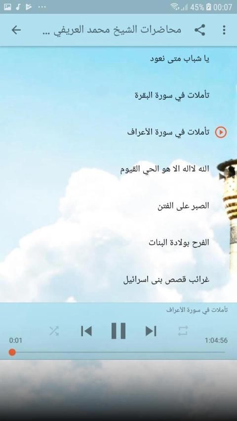 No.1 سوق للتطبيقات ،الالعاب& الفيديو مجانية 20,000+ مستحدمين يحملون محاضرات الشيخ محمد العريفي الصوتية