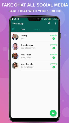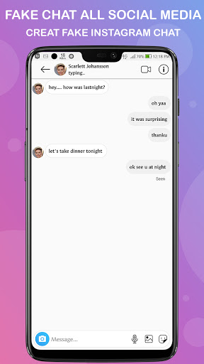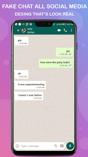 Obrolan Palsu memungkinkan Anda membuat mocks realistis dari percakapan obrolan dan membagikannya dengan teman-teman Anda. Buat whats prank kontak dan percakapan dan bersenang-senang dengan teman dan keluarga Anda.