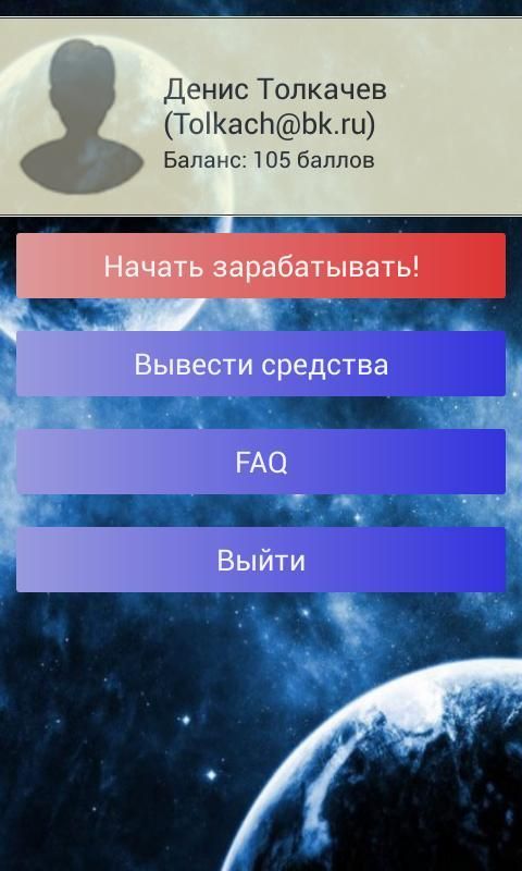 Selamat Datang uang Membuat!. Layanan kami - cara yang bagus untuk membuat uang online, tanpa investasi apa-apa dan tidak laba teryaya.Sut adalah bahwa Anda menjabat aplikasi gratis yang menarik Anda dengan google bermain dan menemukan pada Android-perangkat, dan kami pada gilirannya membayar Anda untuk setiap terbuka aplikasi sebanyak 5 rubel! Tidak buruk kan? Rata-rata, setiap aplikasi beratnya di 3 MB. (Beberapa lebih, beberapa kurang) selama setengah jam Anda bisa mendapatkan tanpa banyak mengejan dari 200, dan bahkan lebih rubel! Setiap hari kami menawarkan 50 link baru untuk aplikasi gratis!, Gemetar pada itu, Anda mendapatkan poin. Untuk setiap link Anda akan mendapatkan 5 poin. Mendapatkan poin Anda dapat menyimpulkan, mengisi ulang ponsel Anda. Satu titik sama dengan satu dolar. Jumlah penarikan minimum - 25 rubel. Perlu diingat bahwa Anda dapat menarik dana hanya sekali sehari. Dalam waktu dekat rasshirienie fungsi dan menambah pekerjaan baru. Program kami memberikan bonus untuk kunjungan harian. Tugas telah selesai setiap hari selama lima hari akan memberikan bonus sebesar 50 poin Make Money.
