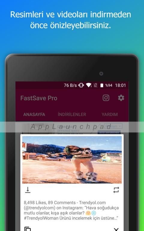 FastSave Pro Instagram Video & İmage Downloader kullanıcılarına instagram üzerindeki video ve resimleri kolaylıkla indirme imkanı sunmaktadır. FastSave Pro sayesinde beğendiğiniz görselleri indirmek için görselin bağlantı adresini kopyalamanız yeterli olacaktır.