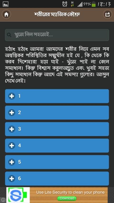 হঠাৎ হঠাৎ আমরা আমদের শরীর নিয়ে এমন সব অস্বস্তিকর পরিস্থিতির সম্মুখীন হই যে , কি থেকে কি করব দিশেহারা হয়ে যাই - খুঁজে পাই না কোন সমাধান। কিন্তু বিশ্বাস করুন!অদ্ভুত এবং খুবই সহজ কিছু সমাধান কিন্তু আছে এই সমস্যা গুলোর।এই অ্যাপ এ দেখে নেই সমাধান গুলো ।