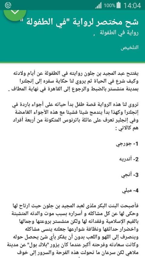 Penerapan novel di masa kecil Abdul Majid Ben Jelloun termasuk ringkasan yang komprehensif dari novel dan setiap murid Machristtajh dalam bahasa Arab dan bahan literatur, aplikasi bekerja tanpa internet dan untuk semua siswa pertama Bakloria Seni dan Humaniora user-friendly.