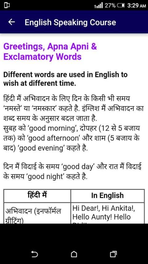 * Belajar untuk berbicara bahasa Inggris dengan lancar dengan Hindi.