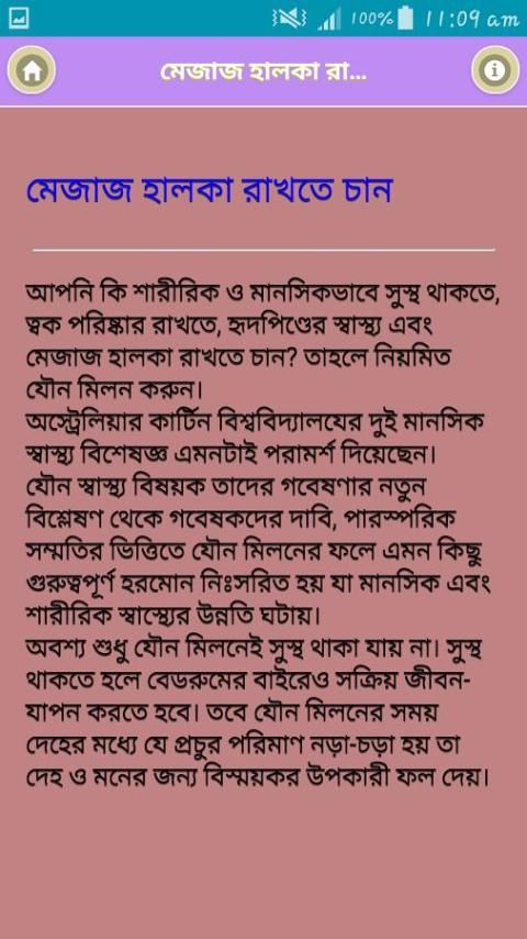 করুন- সুস্থ থাকুন. আপনি কি শারীরিক ও মানসিকভাবে সুস্থ থাকতে, ত্বক পরিষ্কার রাখতে, হৃৎপিণ্ডের স্বাস্থ্য এবং মেজাজ হালকা রাখতে চান? ... @ নিয়মিত যৌনমিলন করুন সুস্থ থাকুন, # উপকারীতা # নিয়মিত # যৌনমিলন করুন .... আল্লাহ তাআলা কিছু স্থান ও সময় ব্যতীত সব সময় ও সকল স্থানে স্ত্রী সহবাস হালাল করেছেন