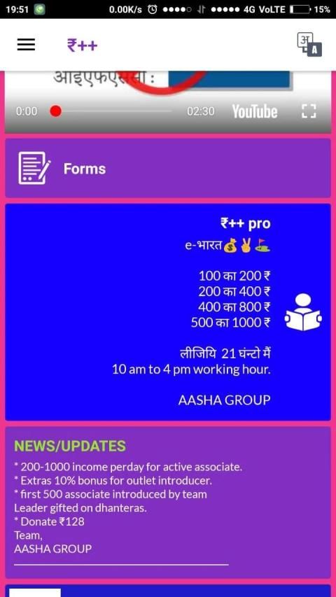 Hi world, Donate your money for charity your donation return back double in your bank account after 21 hour for details download ₹++ app from play store then register and go to form section then click on "want to donate" chose amount u want to donate and submit. AASHA GROUP send u payment link of our group member with phone number. After 21 hour go to form section and click on "my time gift ". After receive gift amount go to again form section and click on "approve" . After your approval ₹++ pro job finish.