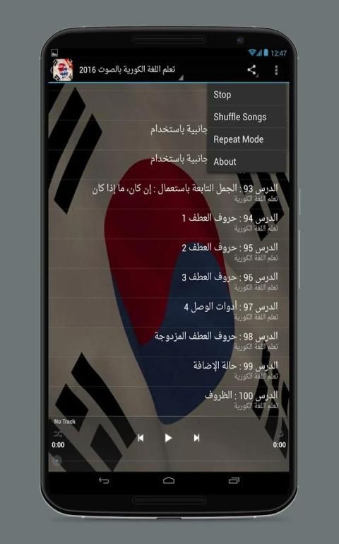 Saya senang untuk menawarkan aplikasi pembelajaran audio bahasa Korea pada tahun 2017 dan ayah saya adalah cara terbaik untuk belajar bahasa Korea untuk speaker Arab