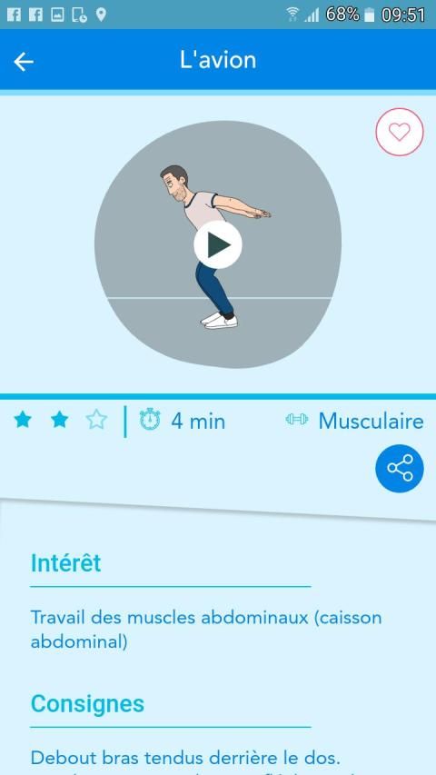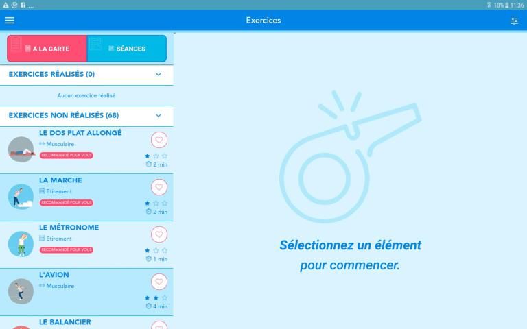 Temukan latihan yang bermanfaat untuk punggung Anda, dalam bentuk video, yang diusulkan secara individual "à la carte" dan dalam bentuk "sesi" yang terdiri dari beberapa latihan. Anda juga dapat menyusun latihan Anda sendiri. Jadwalkan pengingat untuk membantu Anda mengikuti. Urutkan latihan Anda atau sesi Anda sesuai dengan 3 kriteria: tingkat kesulitan (1 hingga 3 bintang), jenis latihan (peregangan, otot, relaksasi), olahraga yang bisa dilakukan di tempat kerja.