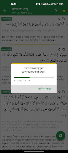 Pengucapan Surah Bangla, uang dan file audio telah diberikan
