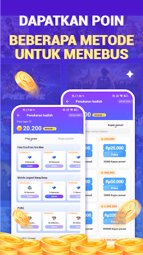 💰Dapatkan koin untuk hadiah: Saat main games, kalian bisa mendapatkan koin. Tukarkan koin anda untuk DIAMOND untuk games populer seperti Mobile Legend, PUBG, Free Fire, Hago…Kalian bisa dapatkan top-up game dan isi ulang pulsa dengan cara yang paling menghemat biaya!