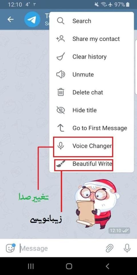 + زیبانویسی (داخل صفحه چت بالا سمت راست از منوی "..." کلیک کنید)