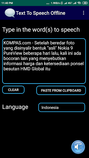 Ini akan menguji kemampuan perangkat Anda untuk berbicara teks menggunakan text-to-speech. Bahasa utama adalah bahasa Indonesia, bahasa sekunder adalah bahasa Inggris. Terima teks dari clipboard Terima teks dari aplikasi lain melalui Bagikan
