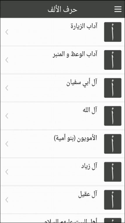 قاموس عاشوراء تطبيق يحتوي على مجموعة كبيرة من الكلمات، المفاهيم، المصطلحات، الاماكن، الشخصيات، المتعلقة بواقعة عاشوراء في السنة 61 هجرية، مفهرسه حسب الحروف الابجدية في اللغة العربية لسهولة التصفح والانتقال بين المواضيع المختلفة في التطبيق.