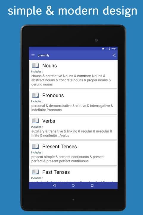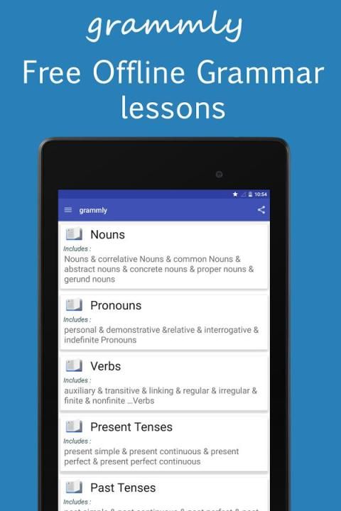 grammly dirancang untuk membantu siswa belajar, belajar dan merevisi tata bahasa Inggris melalui pelajaran yang mencakup topik tata bahasa yang berbeda, setiap pelajaran dibagi menjadi bagian-bagian singkat dan sederhana dan diikuti dengan contoh-contoh untuk pemahaman yang lebih baik.