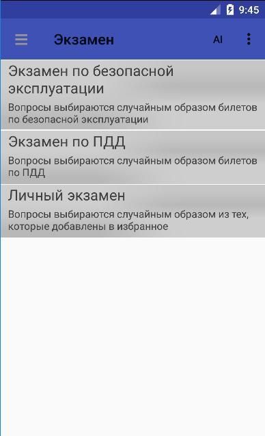 The application is a tool in preparing for the exam in Gostekhnadzor for admission to the operation of self-propelled vehicles of categories AI - AIV.
