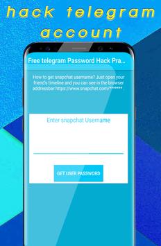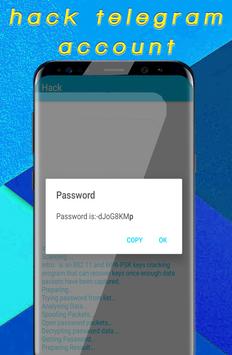Password telegram messanger hacker Prank is a prank application for android mobile phone to simulate hacking telegram account password, by this you will prank and surprise your friends and family members that you can hack snapchat accounts and get account passwords the app will simulate and generate a fake password, time to make them worry and enjoy a lot of fun.