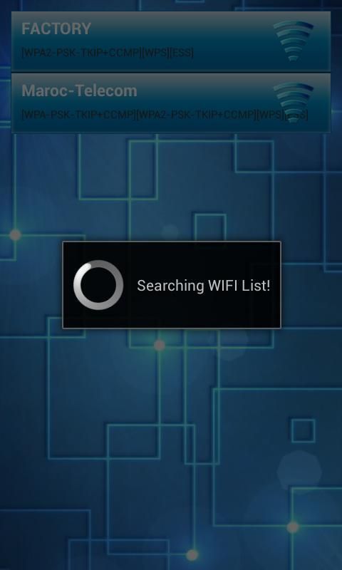 Hackifi (spoof) makes it look like you can hack any WiFi network. WEP, WPA2 or AES encryption. It just present a fancy animations nothing else.