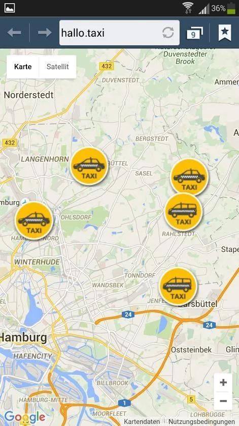 hallo.TAXI ist ein neuer Taxi Service. Mit der hallo.TAXI Driver App können Taxifahrer ihren aktuellen Standort auf der hallo.TAXI-Map verwalten. Die hallo.TAXI-Map ist Bestandteil der Website www.hallo.taxi