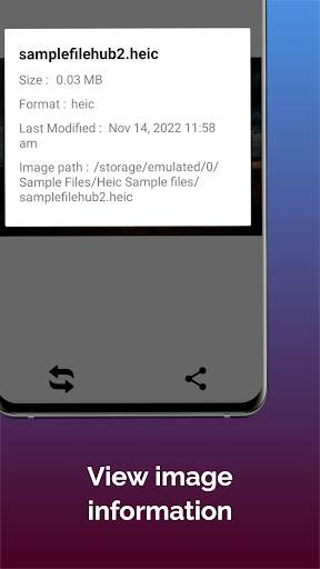 Unduh aplikasi pemirsa gambar HEIC ini untuk melihat gambar HEIC utama, mengonversi gambar HEIC, berbagiGambar HEIC dengan mudah dan periksa informasi gambar.