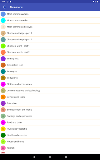 Aplikasi gratis ini akan membantu Anda mempelajari cara membaca, menulis, dan mengucapkan kata-kata dan frasa. Ini adalah permainan edukatif yang menyenangkan dan mudah digunakan yang mencakup ribuan kata dan frasa yang memberi Anda pengetahuan dalam situasi dunia nyata. Aplikasi ini dikategorikan ke dalam 100 topik yang mencakup kehidupan sehari-hari atau situasi perjalanan.