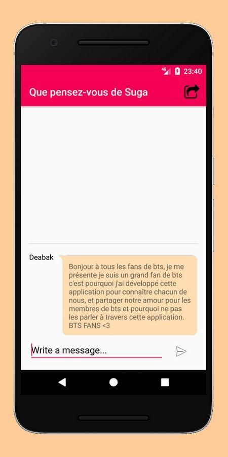 Selamat datang di tempat resmi untuk dunia aplikasi. 20,000+ Pengguna mendownload BTS ARMY français Chat versi terbaru di 9Apps secara gratis! Selain itu, versi terbaru dari aplikasi ini juga memperbaharui banyak fitur. Aplikasi HOT ini di rilis tanggal 2018-03-21. Jika Anda menginginkan apliaksi lain selain ini, buka 9Apps.
