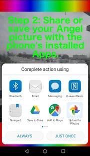 Aplikasi ini akan memungkinkan Anda untuk mengambil foto Malaikat dan berbagi dengan teman-teman Anda. Atau Anda dapat menyimpan Malaikat foto untuk memori yang baik.