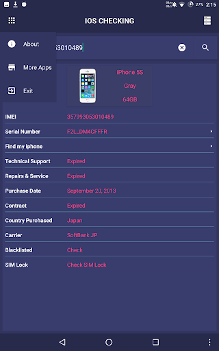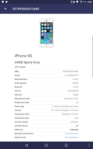 Penjabaran dari 9apps iDevice Check - IMEI Checking