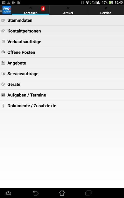 Unabhängig vom eingesetzten Gerät (Smartphone, Tablet oder via HTML/Browser) stehen Ihnen mit iFAS mobile unter anderem folgende Funktionen zur Verfügung: