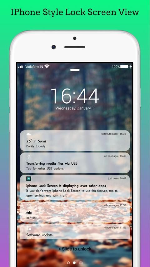 Turn your phone Lock Screen into a real iPhone style Lock Screen. Experience the apple interface right on your android phone. It's easy, with just one click, your phone switches to app lock ios style.