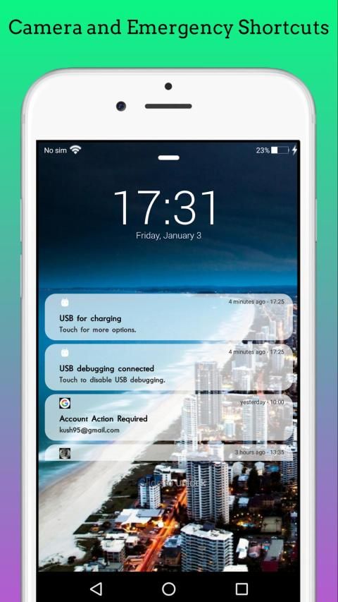 Ubah Layar Kunci ponsel Anda menjadi Layar Kunci gaya iPhone asli. Nikmati antarmuka apple tepat di ponsel android Anda. Sangat mudah, dengan hanya satu klik, ponsel Anda beralih ke gaya aplikasi mengunci ios.