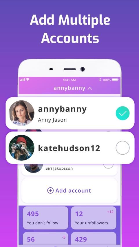 Discover your followers and know your unfollowers. Get likes report. Find out who is not following you back!
