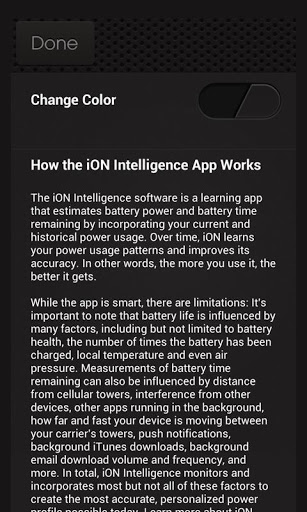 Being predictable isn’t always a bad thing. There’s an incredible power that comes with being able to predict and plan your day down to the second. With an OtterBox, you know exactly what you’re getting. Protection. And now with the Defender Series with iON Intelligence, we’re giving you what you’ve come to expect, plus a whole lot more — an battery life app for Android. Introducing the Defender Series with iON Intelligence, offering two times the battery life, Defender Series level of protection and an innovative app that intelligently manages your power so you can reliably predict to better plan your day. Smartphone outsmarted. What is the iON Intelligence app?The OtterBox iON Intelligence app is the industry’s first fully integrated power management software that acts as an Android battery app. This app is a battery usage app for Android, estimating and predicting battery power and battery time remaining by monitoring your device-usage habits. The iON Intelligence app lets you eliminate guesswork by intelligently predicting when your phone battery will run out. Over time, the iON Intelligence app learns your power usage patterns and improves its accuracy. In other words, the more you use it, the better it gets. The iON Intelligence Android battery app monitors and incorporates many different factors to create the most accurate, personalized power profile possible. Platform SupportAndroid smartphones running Jelly Bean OS or lateriON Intelligence app features•Estimates and predicts remaining battery life of your Android device•Automatically transfers power from the case to your Android device •Displays power status for the case and device separately as well as estimated time when power will run out•App automatically updates itself to improve and extend the functionality of your deviceDefender Series with iON Intelligence case/device interaction features •Case and Android device charge and sync simultaneously•Case charges device automatically – no need to flip switches or manually monitor power •Front-facing LED indicators provide power status of the caseiON Intelligence InterfaceBlack Background:Red gauge: phone battery low (0-20%)White gauge: phone charging (21-100%)White Background:Red gauge: phone battery low (0-20%)Black gauge: phone charging (21-100%)Awardsinternational CES Innovations 2013 Design and engineering Award: Portable Power Category Certifications & Testing-RoHS compliantThese tips will tell you how to save battery life on Android devices -Turn off unused hardware, such as WiFi, bluetooth screen brightness and location services-Kill unused apps such as maps, music, internet and voip Please note: This app is a beta version for Android users. The bottom dial on the app’s first screen is locked on 80% to illustrate the hypothetical power added by the Defender Series with iON Intelligence case. The top dial displays remaining battery life. The time estimations on the second screen are fully functional and ready to use. We are currently developing a Defender Series with iON Intelligence case for an Android device and will communicate updates on additional device options through OtterBox.com.Find out more about the Defender Series with iON Intelligence at http://www.otterbox.com/defender-series-ion-intelligence/defender-series-ion-intelligence,default,pg.htmlOtterBox iON Intelligence End User License Agreement and Privacy Policy: http://www.otterbox.com/policies/policies,default,pg.html.