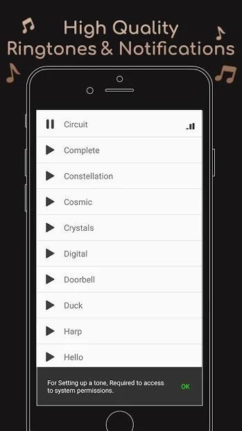 Personalisasi ponsel Anda dengan kualitas tinggi ringtone dan notifikasi suara gratis. Ini bekerja aplikasi tanpa kebutuhan internet, Anda dapat mengubah nada dering Anda kapan saja Anda inginkan. Masih secara manual melakukan download ringtone ke perangkat Anda? Aplikasi ini dapat dengan mudah membuat Anda 20 + nada dering musik yang berbeda dan suara pemberitahuan.