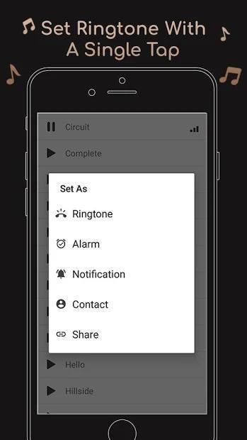 - Set any ring tone as Ringtone/Notifications/Alarm Sound