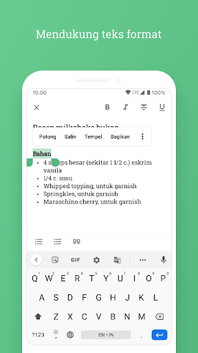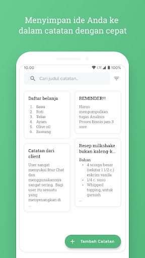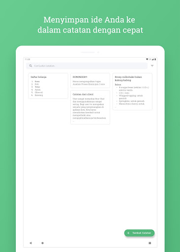Aplikasi ringan dan sederhana untuk mengelola ide atau hal-hal yang membuat Anda lebih produktif ke dalam bentuk catatan dengan cepat dan di mana saja tanpa harus terhubung ke internet.