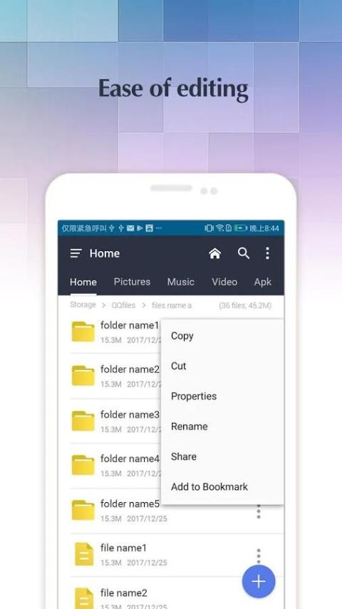 Dengan File Manager, Anda dapat dengan mudah menyalin, memindahkan, mengubah nama, menghapus, mencari, berbagi, dan mengatur semua file di perangkat penyimpanan. Membantu Anda menghemat ruang, menemukan dan bersih file yang tidak dibutuhkan, sehingga file tidak selalu mengambil ruang telepon dan tidak dapat menemukannya.