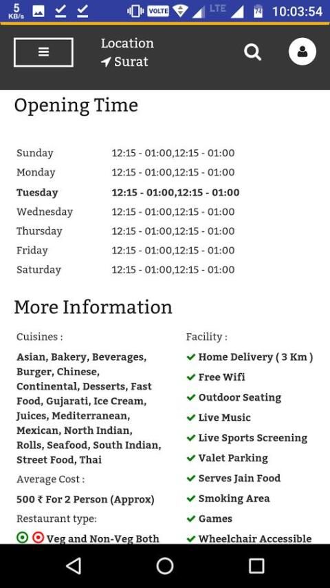 * Anda dapat dengan mudah mencari kafe, restoran, makanan penutup dengan lokasi, Anda dapat memilih masakan yang berbeda. mis Gujarati, Meksiko, India.