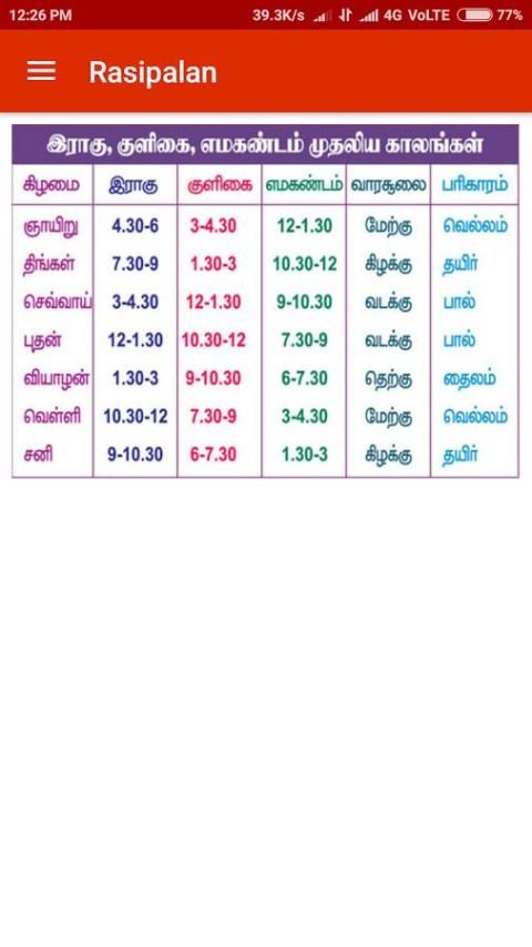 Rasi Palan Hari ini (endraya rasi Palan) pemberitahuan akan dikirim setiap hari pagi dan Indha vara rasi Palan akan dikirim awal setiap minggu. Intha matha rasi Palan di tamil akan dikirim setiap bulan. update hari ini Rasi Palan untuk semua rasi mesham, rishabam, mithunam, kadagam, simmam, kanni, thulam, vrischikam, Danush, makaram, kumbam, Meenam.