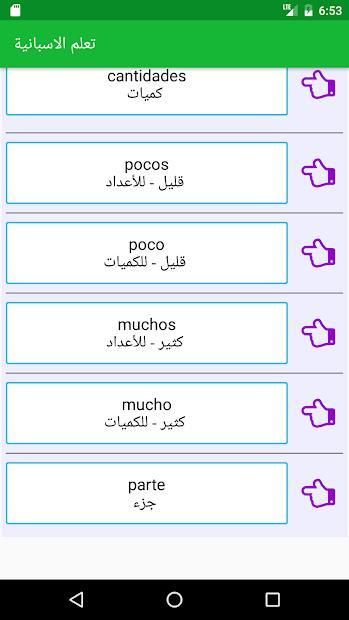 من خلال هذا التطبيق ستتمكن من تعلم الاسبانية من الصفر حتى الاحتراف وبدون نت مع محادثات إسبانية مع الجمل مترجمة باللغة العربية وكذلك صفات باللغة الاسبانية ،