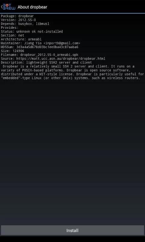 BotBrew is a ▪ root ▪ app that brings cross-compiled command line software to Android, along with a package manager based on opkg and a service manager based on runit. Some highlights include: