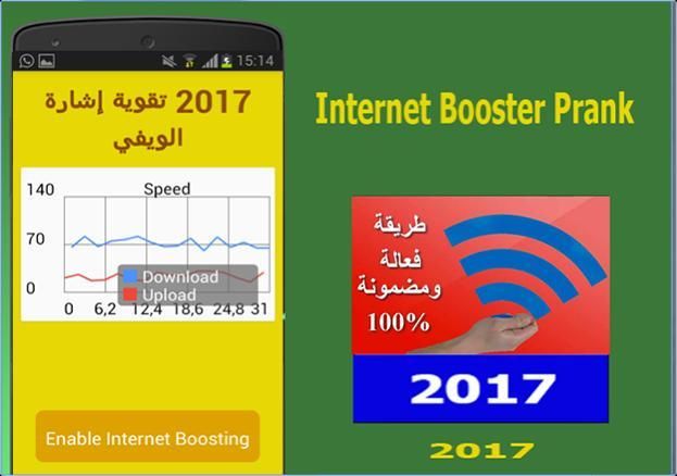 تطبيق مقوي الانترنت اللاسلكي يعمل على تعزيز وتحسين اشارة الواي فاي على هاتفك او جهازك اللوحي الاندرويد ومجانا. هذا التطبيق غير مخصص لاختراق شبكات الواي فاي. هذا التطبيق مصمم كطريقة سريعة وسهلة لتنشيط اشارة الانترنت اللاسلكي من خلال شبكة الواي فاي حيث يعطيك اسرع اشارة واي فاي ممكنة