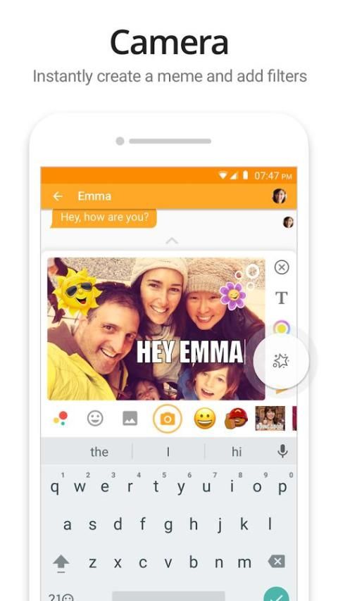 Dengan semua Awesome Bar baru, berkomunikasi melalui meme, gambar, emoji, GIF, dan stiker baru saja mudah! Bersiap-siap untuk mengejutkan teman-teman Anda dengan aplikasi instant messaging baru Anda untuk android! Dengan semua fitur menyenangkan seperti pembuat meme dan bar mengagumkan, Anda akan menjadi texter paling keren di kota!