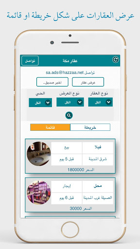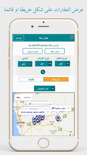 Aplikasi Makkah Real Estate, menyajikan semua real estat di Mekah dengan mudah ditangani dan digunakan dengan menampilkan real estat sebagai daftar atau peta