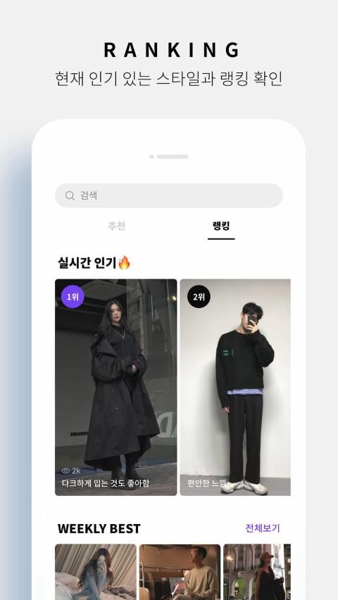 • 실시간으로 업데이트 되는 주간 인기 코디를 통해 지금 핫한 스타일을 파악해보세요.