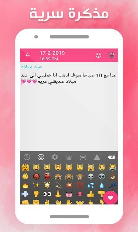 مذكرة سرية للبنات بالقفل هو تطبيق يوفر لك مذكرة جميلة و متطورة على هاتفك و بالعربية و يمكن قفلها للحفاظ على أسرارك من التجسس .