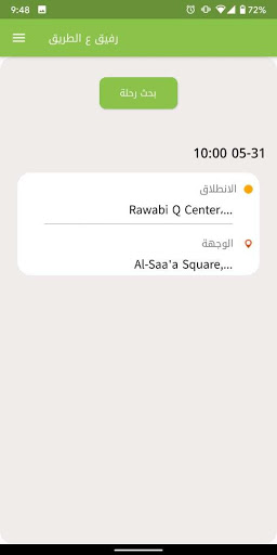 Waktu perjalanan Rafiq mengingatkan Anda serta mengajarkan Anda awal mobil untuk Anda di tempat yang disepakati. Sebagai teman memungkinkan Anda untuk mengetahui tentang tempat dan gerakan (trek) 10 menit sebelum dimulainya perjalanan.