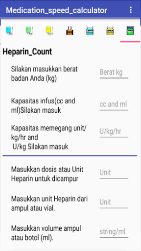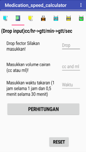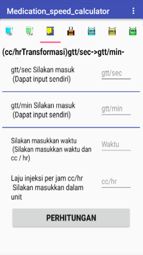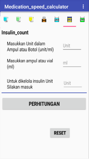 Kalkulator kecepatan mdication adalah sebuah aplikasi yang dibuat untuk membuat perhitungan kecepatan infus lebih nyaman.