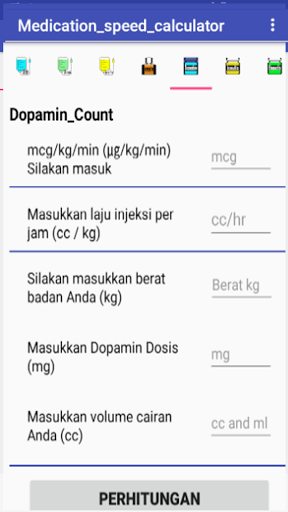 4. Perhitungan dopamin berdasarkan mcg (mcg / kg / min) dan perhitungan berbasis cc / jam tersedia (lihat cara menggunakan)