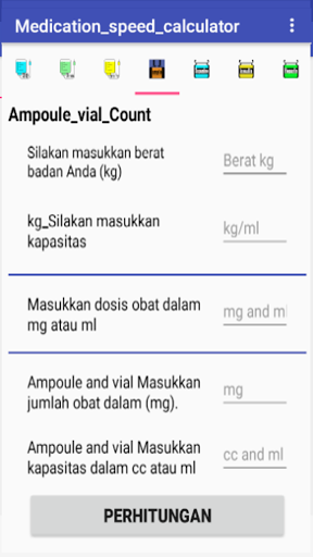 3. Fungsi perhitungan ampul dan botol sederhana tersedia untuk perhitungan berdasarkan (berat dan kg / ml) dan perhitungan berdasarkan (ml). (Lihat cara menggunakan)