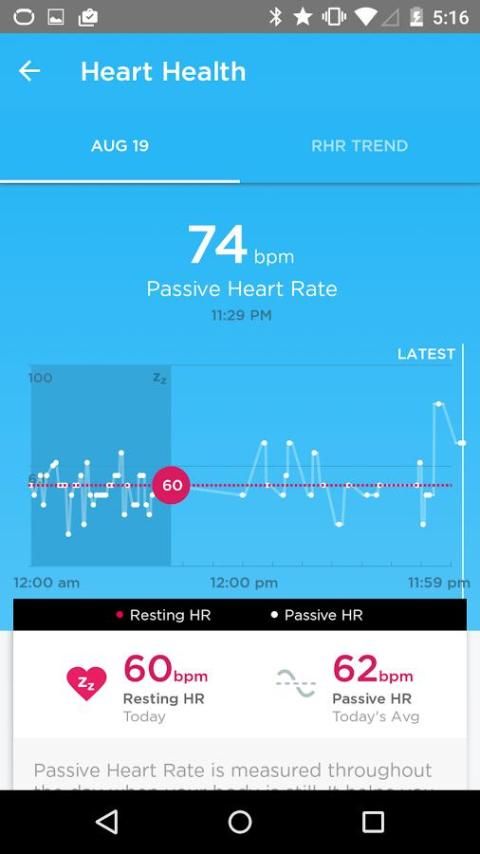 Lihat bagaimana Resting Anda dan Pasif Heart Rate (UP3 / Up4 diperlukan) perubahan dari waktu ke waktu dan memahami apa denyut jantung yang sehat berarti untuk kesehatan Anda.