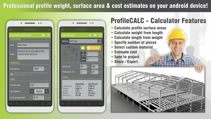 • Calculate profile weight from specified length (Metal, steel, wood & more!)